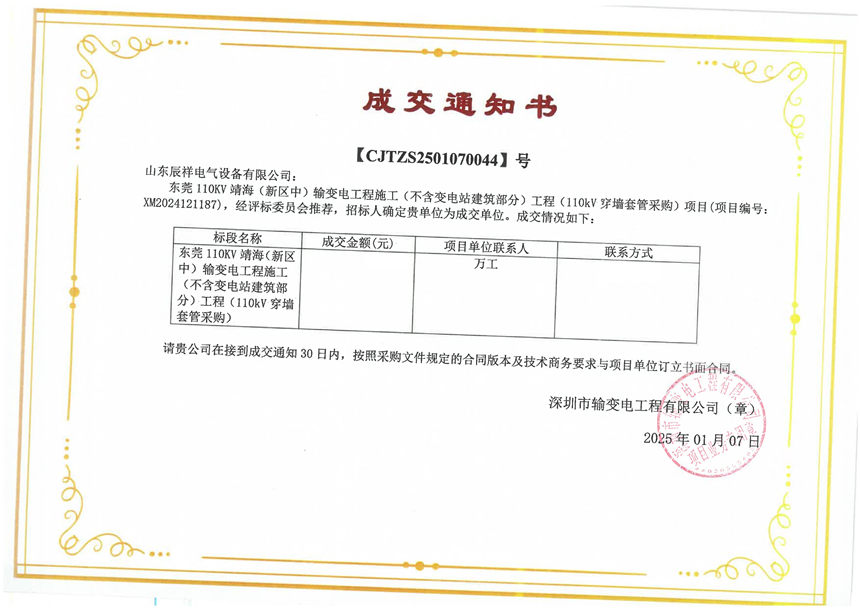 2025.01.03 交流穿墻套管中標(biāo)通知書